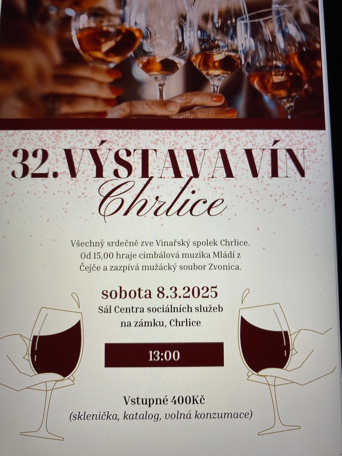 Výstava vín 8. 3. 2025 od 13:00 v kulturním sále centra socialních služeb Chrlice